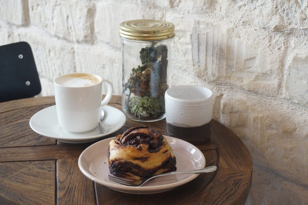 Place ensuite à une toute nouvelle adresse! Anciennement nommé Caffe Juno, cette adresse se nomme désormais La Bête Noire et propose à la fois une belle carte pour le déjeuner et le brunch (que je veux maintenant tester le plus rapidement possible!) qu’une option goûter. Pour ma part, j’ai choisi un savoureux latte bien onctueux ainsi que la spécialité sucrée de la maison, une babka au chocolat absolument délicieuse (la prochaine fois, je tente le gâteau au chocolat et confiture de myrtilles!). Le cadre est simple mais beau et chaleureux (quoique un peu perdu dans Paris), l’accueil est extrêmement souriant, en bref, cette adresse vaut vraiment le coup de s’y arrêter pour un déjeuner, un goûter ou un brunch avant ou après une balade au Jardin du Luxembourg. Coup de coeur!