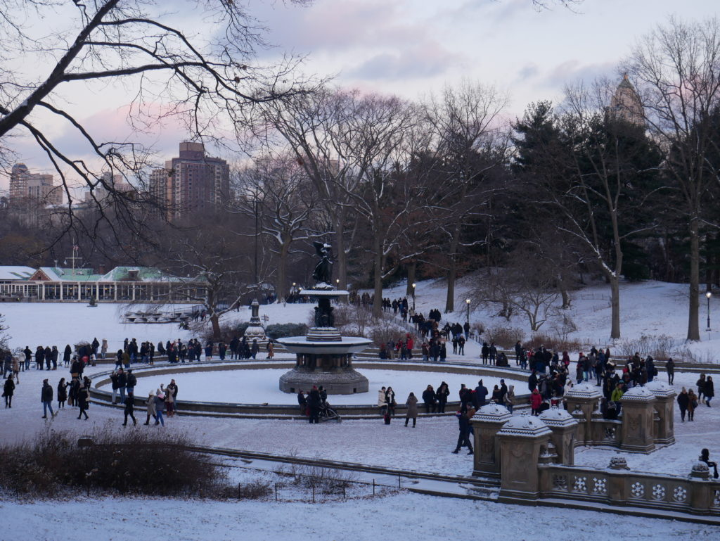 Comme promis, voilà enfin le retour des billets consacrés à New-York! Je démarre cette nouvelle série de Carnet de Voyage par un petit tour à Central Park. Véritable poumon vert de NY, Central Park est immanquable, qu’importe votre temps en ville, impossible de le manquer! Chaque saison a ses avantages aussi, n’hésitez pas à y retourner si vous vous y êtes déjà rendu, pour ma part, j’avoue rêver de le découvrir avec ses flamboyantes couleurs d’automne, bien que le printemps, ses couleurs vives et les fleurs à foison me font très envie aussi! Quoiqu’il en soit, j’aurais eu cette chance de pouvoir le « visiter » sous le neige pour ma toute première fois, quel bonheur! En effet, j’ai attendu quelques jours avant d’y aller et quelle bonne idée, car c’est sous le flocons que j’ai découvert ce dimanche-là, la beauté et l’immensité de Central Park.